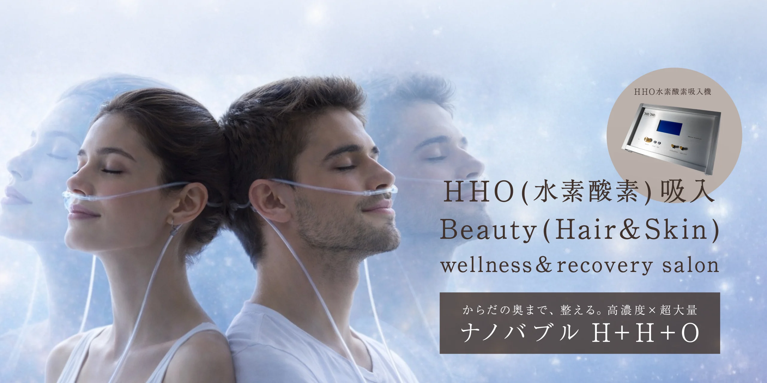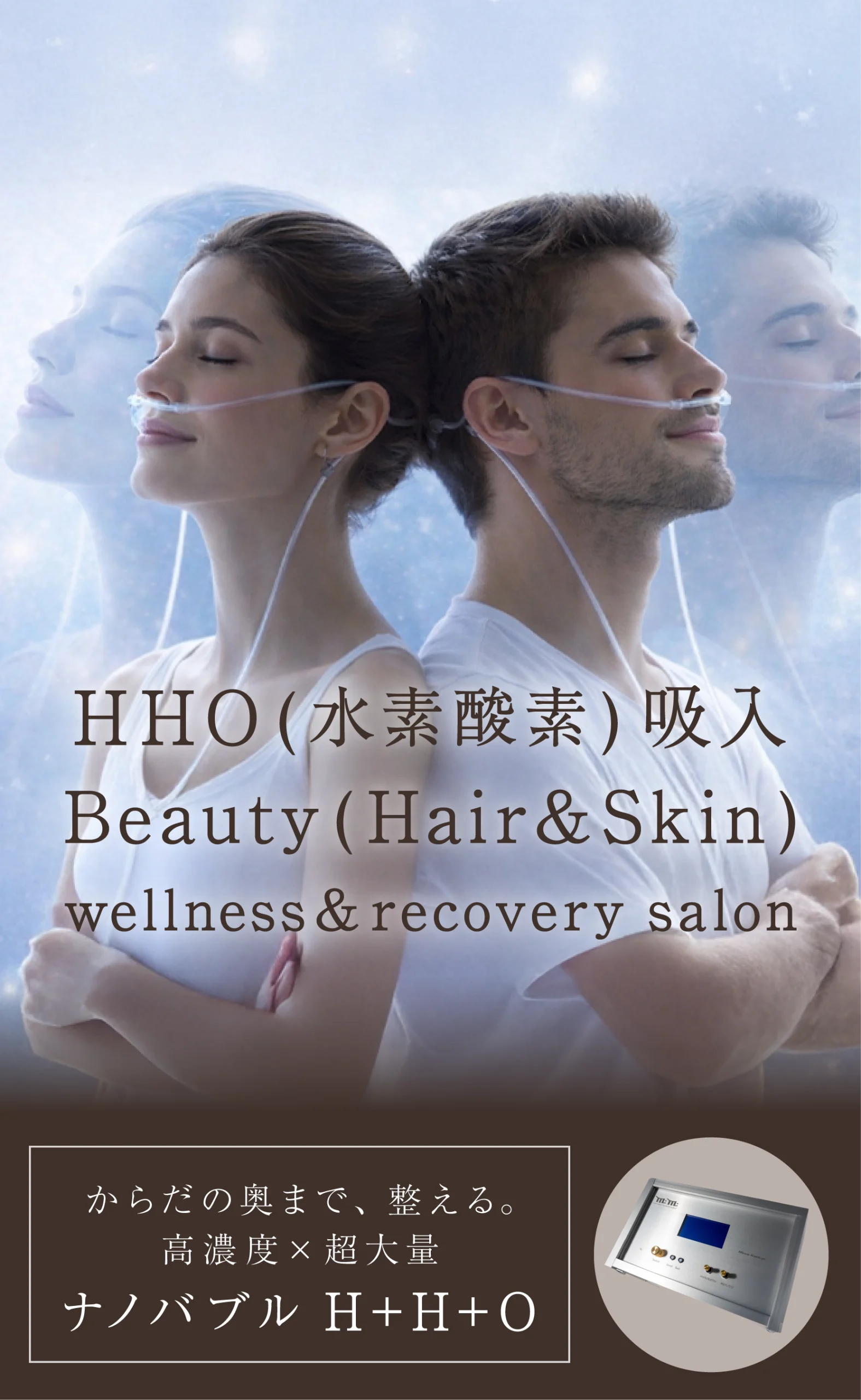 原子状の水素酸素を直接体内に取り込むことで、一般的な水素吸入よりも効率的に働きかけます。アンチエイジング、美肌効果、疲労回復、集中力向上など、美容・健康両面で幅広い効果が期待できます。